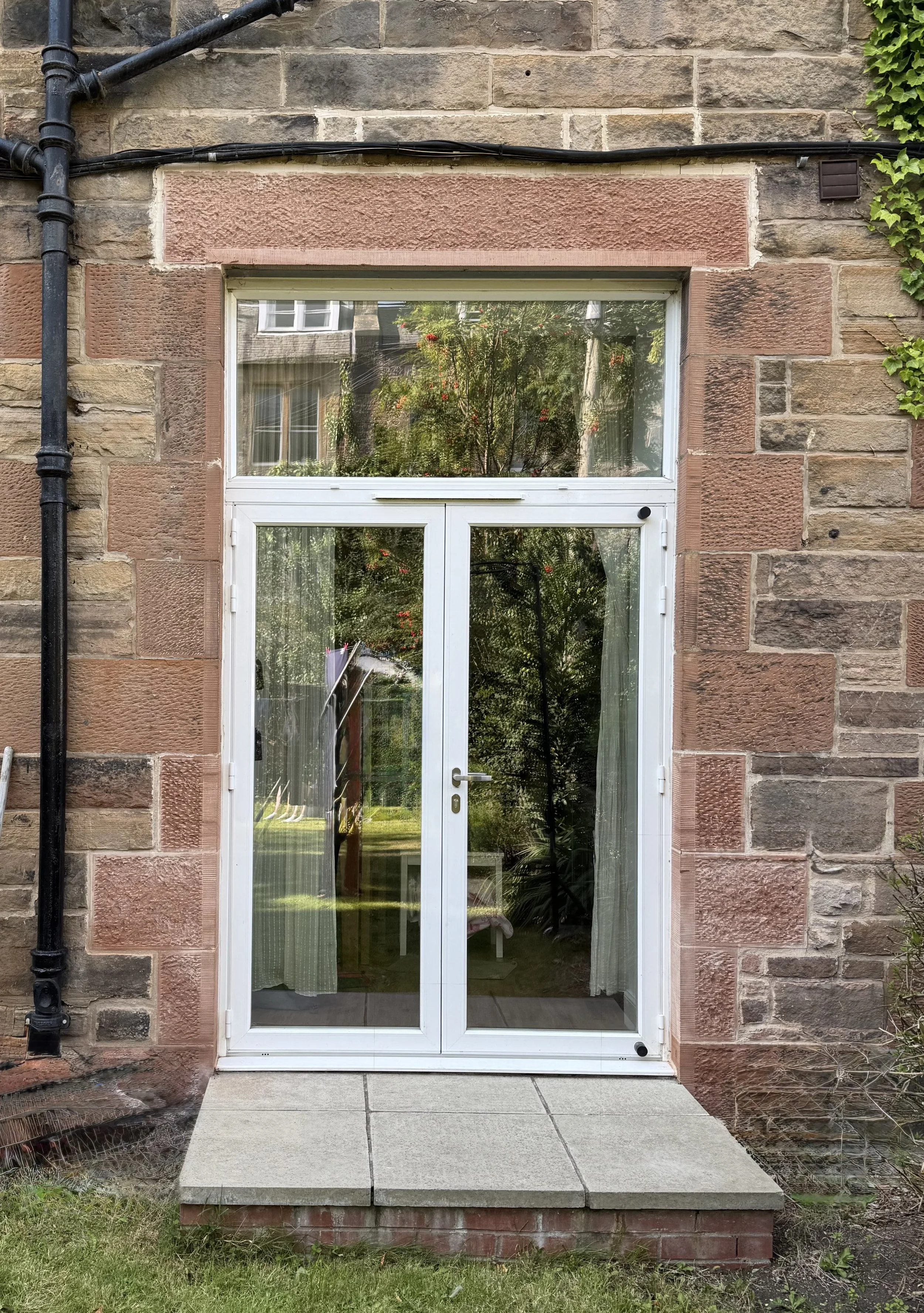 This ground-floor flat in Bruntsfield underwent some internal renovations. The project involved creating a new ensuite bathroom and a new kitchen, as well as transforming a window into double doors to provide direct access to the garden.